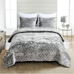 Evlen Home Kapitone Kadife Yatak Örtüsü Seti Çift Kişilik Supersoft 3 Parça Yumuşak Elyaf Dolgulu Gri Gri