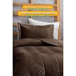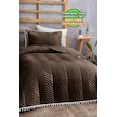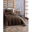Evlen Home Ponponlu %100 Pamuk Tek Kişilik Günlük Yatak Örtüsü Pike Takımı Seti Koyu Kahve