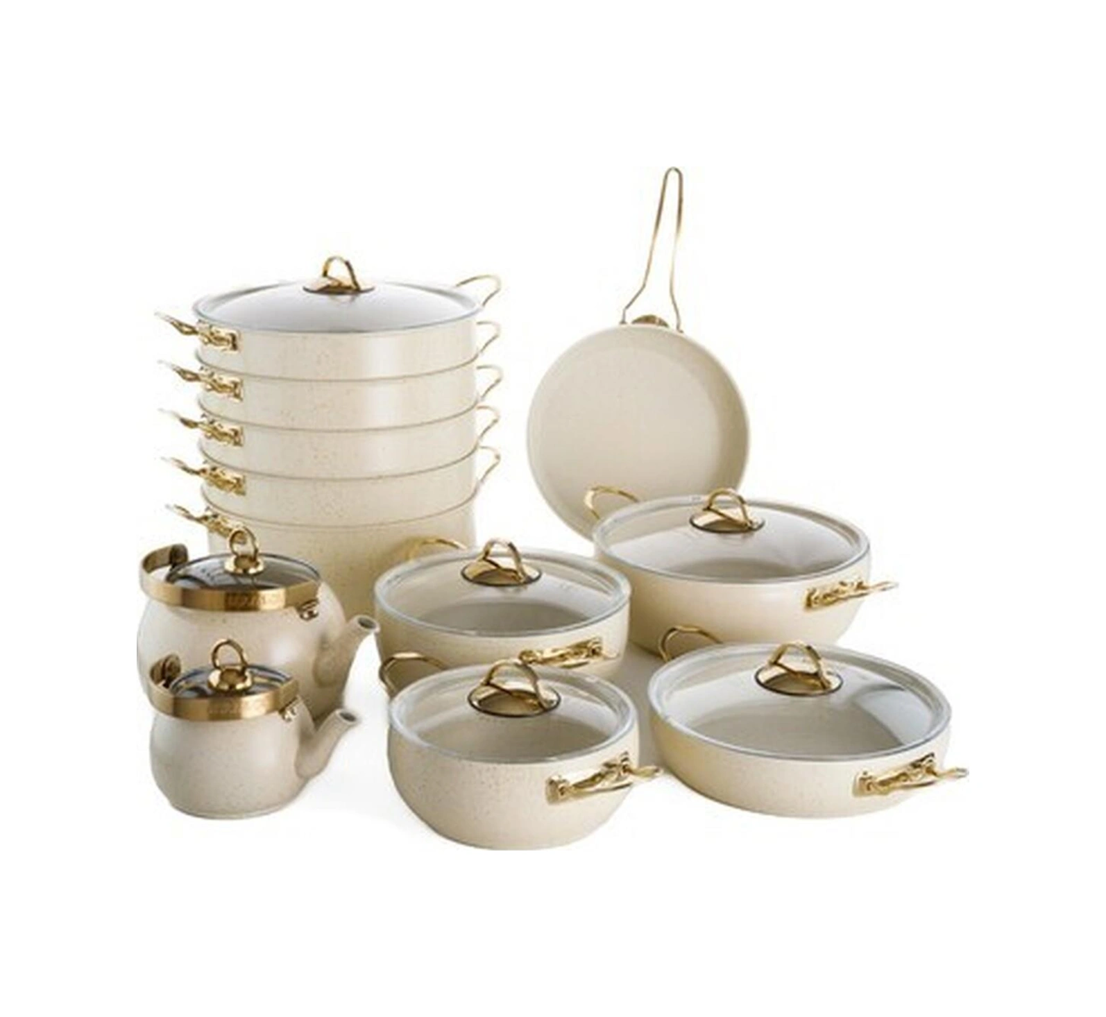 Evren 19 Parça Cream Güveç Tencere Seti Bakır - Siyah