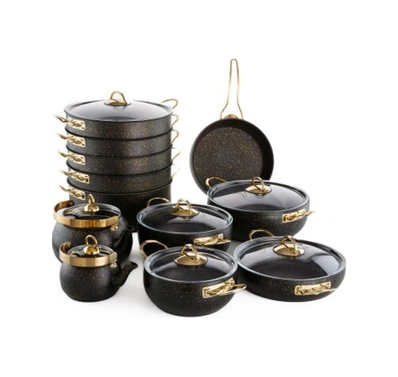 Evren 19 Parça Gold Stone Güveç Tencere Seti Bakır - Siyah