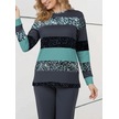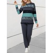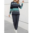 Evyora Kadın Uzun Kollu Bisiklet Yaka Çizgili Desen Iki Iplik Bluz Ve Pantolon Ikili Takım Yeşil