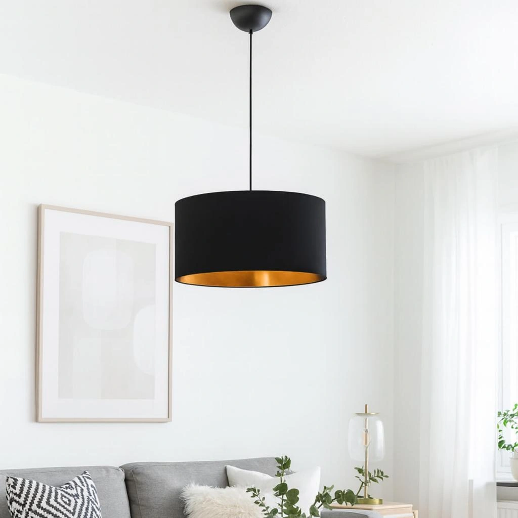 Exclusive Siyah Kumaş Büyük Boy Sarkıt İçi Gold Avize Siyah