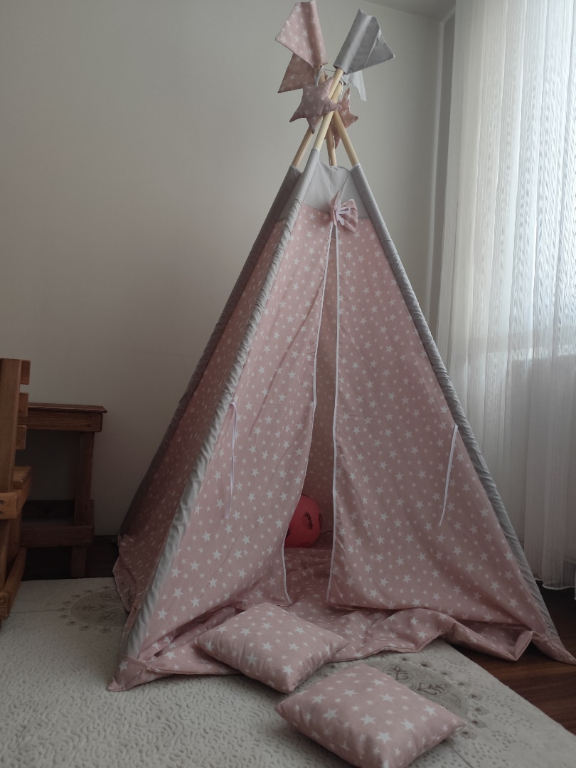 Exorbaby Xl Büyük Boy Ahşap Ve Pamuklu Oyun Çadırı , Oyun Evi Pembe