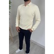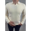 Explode - Erkek Ekru Polo Yaka Regular Triko Kazak Ekru