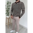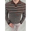 Explode - Erkek Kahve Çizgili Polo Yaka Oversize Triko Kazak Kahverengi