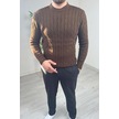 Explode - Erkek Kahve Örgülü Slim Fit Bisiklet Yaka Triko Kazak Kahverengi