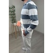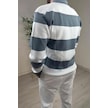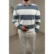 Explode - Erkek Mavi - Ekru Şerit Desenli Polo Yaka Oversize Triko Kazak Mavi
