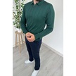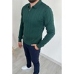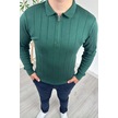 Explode - Erkek Yeşil Çizgili Fermuarlı Polo Yaka Triko Kazak Yeşil