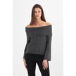 Explode - Kadın Antrasit Madonna Yaka Oversize Triko Kazak Antrasit