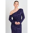 Explosion Kadın Full Pul Payetli Tek Omuz Detaylı Abiye Elbise 7687 Mor Mor