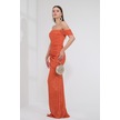 Explosion Tek Omuz Maxi Pırıltılı Gece Elbisesi - Özel Günler İçin Turuncu