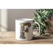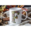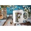 F Baş Harf Çiçek Desenleri İle Natural Tarz Kupa Bardak - Kişiye Özel Çiçekli Kahve Çay Bardak - Beyaz
