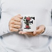 F Baş Harf Kırmızı Güller İle Sarılı Bardak 330 Ml Kişiye Özel Çiçekli Hediye Beyaz