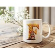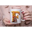 F Harf Sonbahar Yaprak Temalı Kupa Bardak - Sevimli Figürler İle Alfabe Harfli Bardak - Kişiye Özel Beyaz