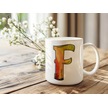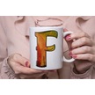 F Harf Yaprak Renkleri İle Kupa Bardak - Kişiye Özel Alfabe Harfli Bardak - Hediye Beyaz