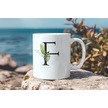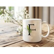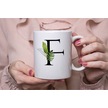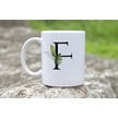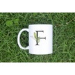 F Harf Zarif Yaprak Desenli Kupa Bardak - Naturel Sade Alfabe Harfli Bardak - Kişiye Özel Hediye Beyaz