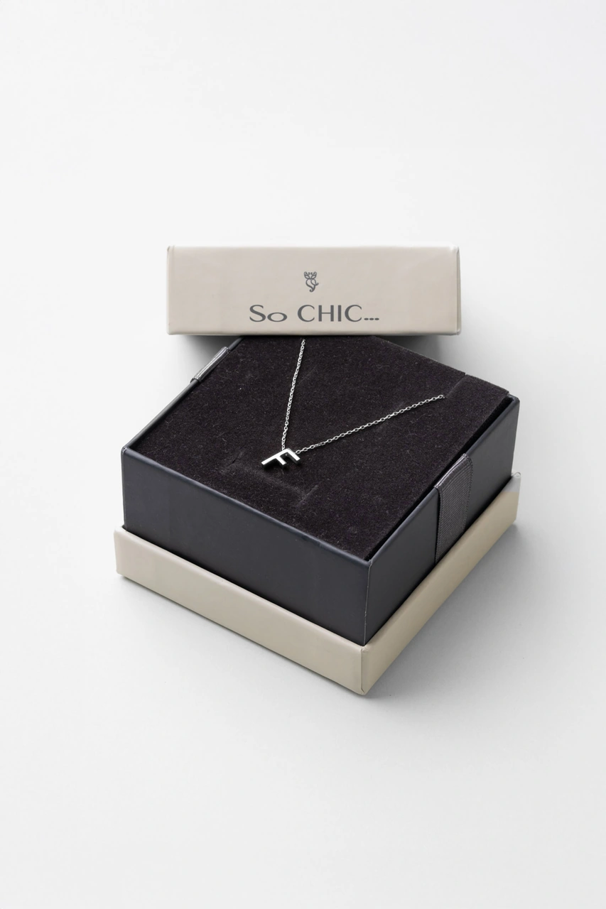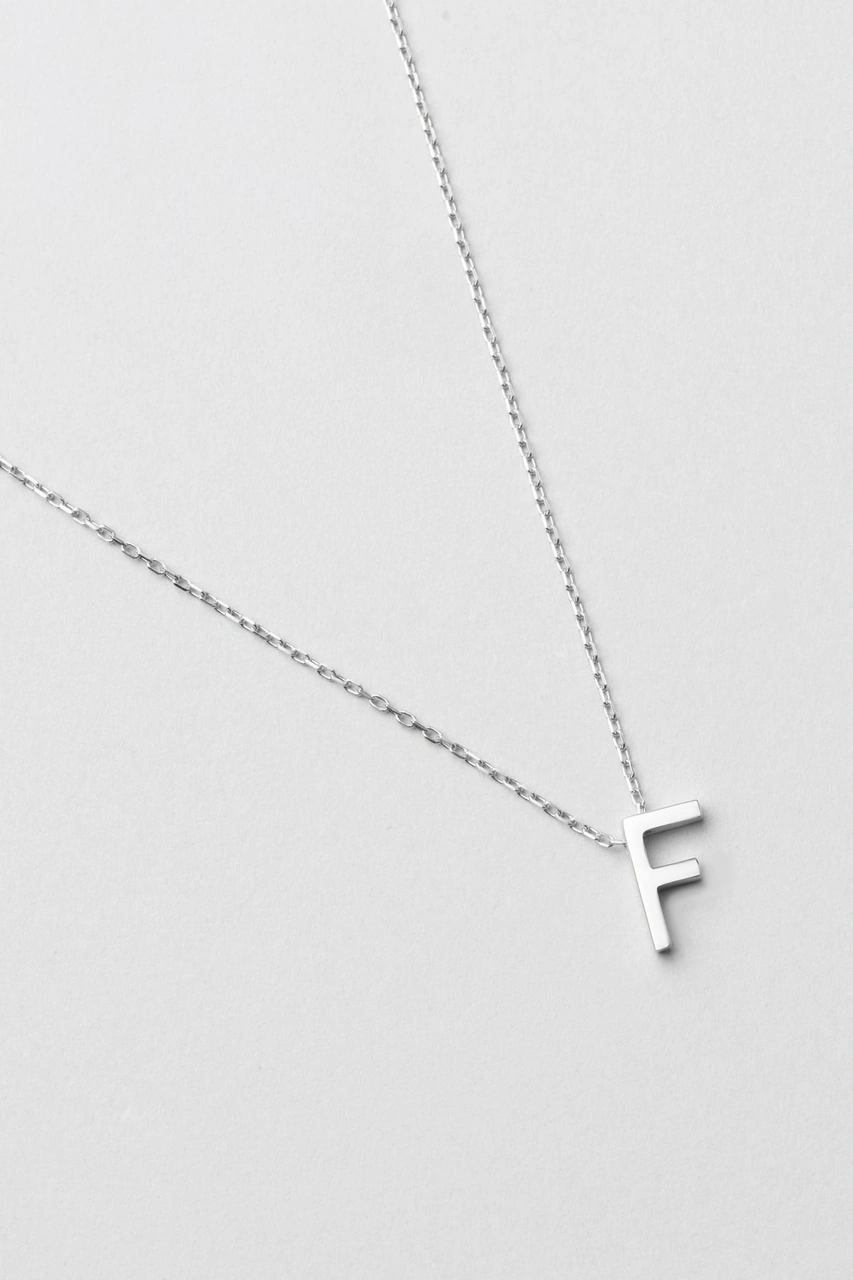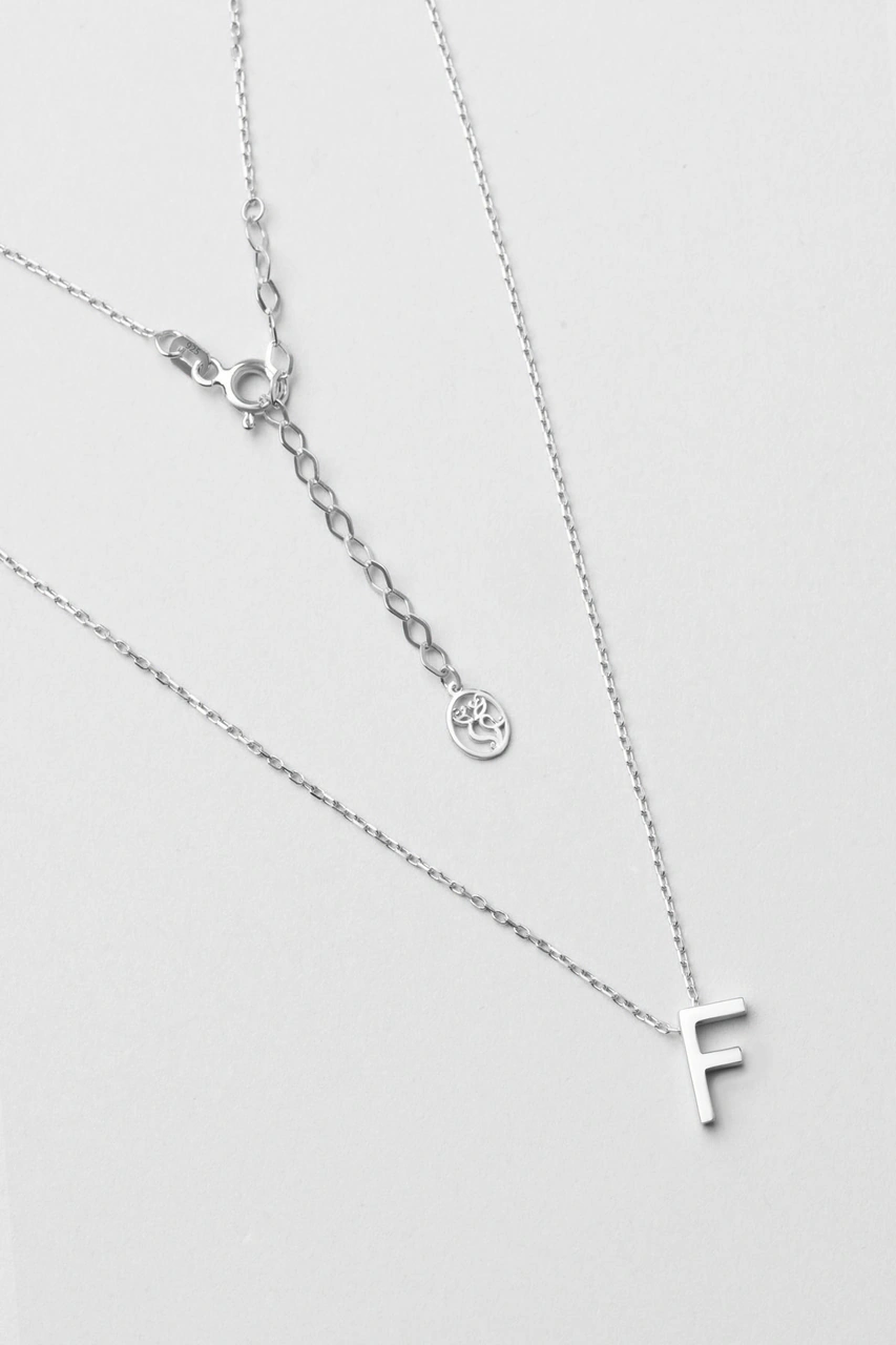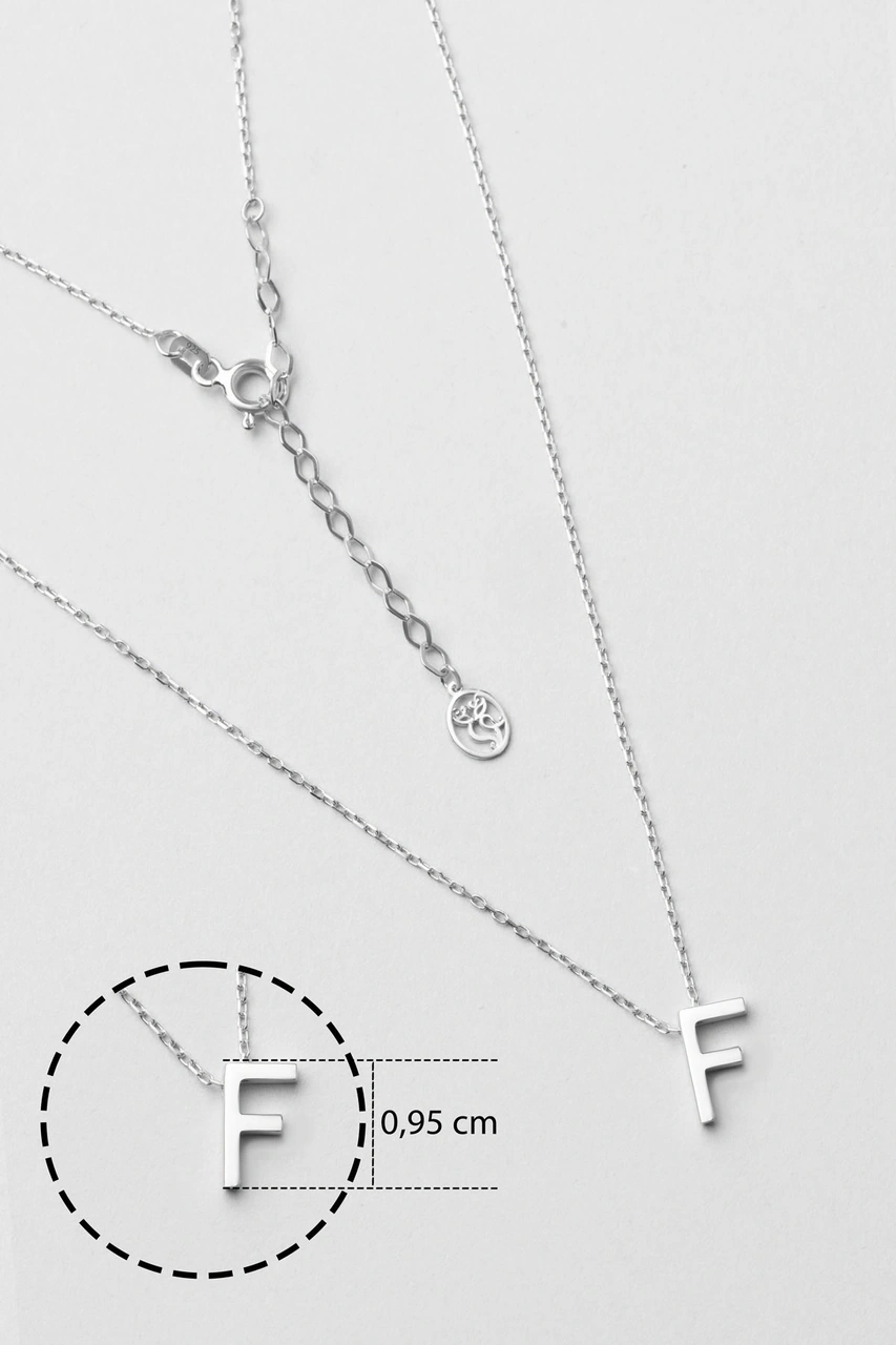 F Harfi 18 Ayar Beyaz Altın Kaplama 45 Cm Gümüş Kolye Rodyum