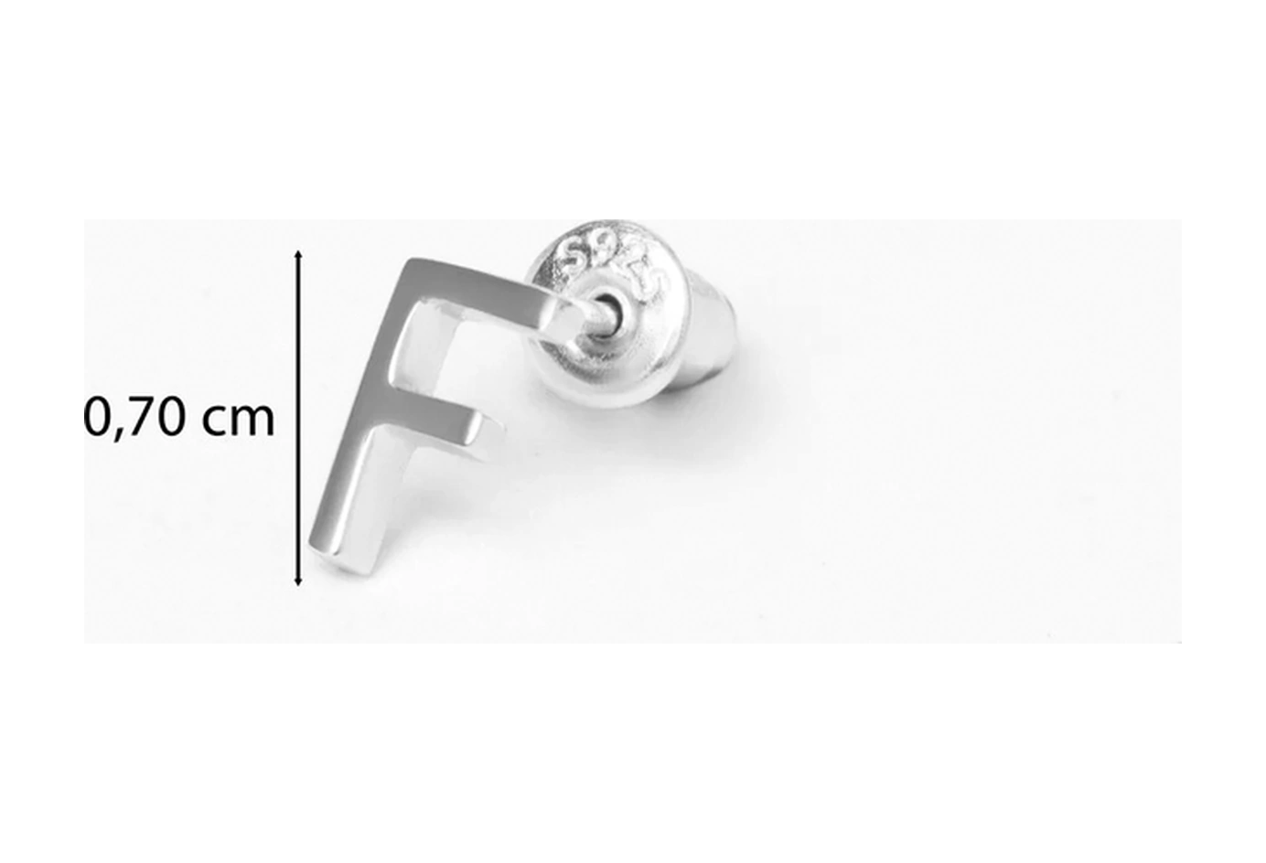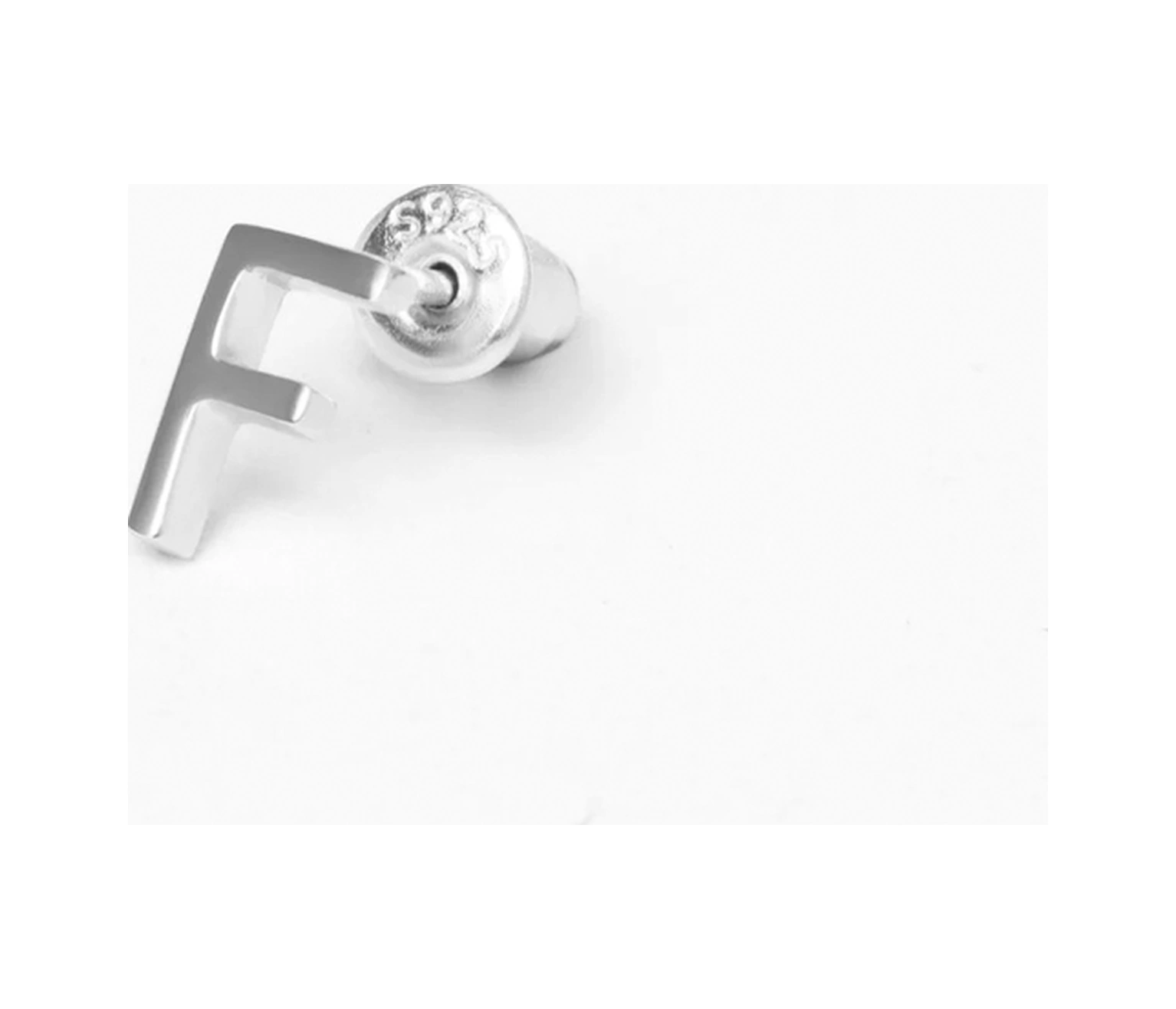 F Harfi 18 Ayar Beyaz Altın Kaplama Gümüş Tek Küpe Beyaz