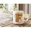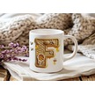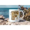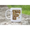 F Harfi Bal Arısı Tasarım Kupa Bardak - Bal Ve Petek Desenli Kişiye Özel Kahve Kupası - Hediyelik Beyaz