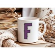 F Harfi Mor Puantiyeli Kupa Bardak - Polka Dot Tasarım Kahve Çay Bardak - Kişiye Özel Hediyelik Beyaz