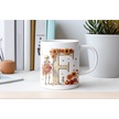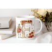 F Harfi Pembe Kareli Kalpli Göz Emojili Kupa Bardak Eğlenceli Kareli Tasarım Kahve Çay Kupası Beyaz