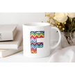 F Harfi Renkli Zigzag Desenli Kupa Bardak - Afrika Tarz Etnik Tasarım Kupa - Kişiye Özel Beyaz