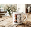 F Harfi Şapkalı İskelet Figürlü Ve Çiçekli Kupa Bardak - Cadılar Bayramı / Halloween Özel Hediye Beyaz