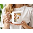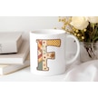 F Harfi Sonbahar Kış Temalı Yamalı Tasarım Kupa Bardak - Etnik Ve Pathwork Severlere Özel Hediye Beyaz