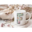 F Harfli Pastel Çiçek Desenli Kahve Kupası - Kişiye Özel Çiçekler Koleksiyonu Bardak - Hediye Beyaz