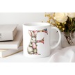 F Harfli Tavşan Kupa - Patchwork / Yamalı Desenli İsme Özel Kupa - Pastel Vintage Tarz Hediyelik Beyaz