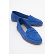 F02 Mavi Süet Hakiki Deri Kadın Loafer Ayakkabı Mavi