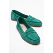 F02 Zümrüt Yeşil Süet Hakiki Deri Kadın Loafer Ayakkabı Zümrüt Yeşili