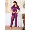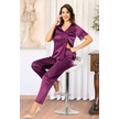 Faal 4111 Kadın Dantel Detaylı Saten Kısa Kollu Pijama Takım-mor Mor