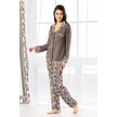 Faal 8603 Kadın Uzun Kollu Önden Düğmeli Pijama Takımı-kahve Kahve