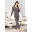 Faal 8618 Kadın Uzun Kollu Dantel Detaylı Pijama Takımı-füme Füme