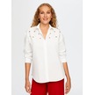 Faik Sönmez Taşlı Trok Aksesuarlı Poplin Kadın Gömlek W26gml008 Beyaz