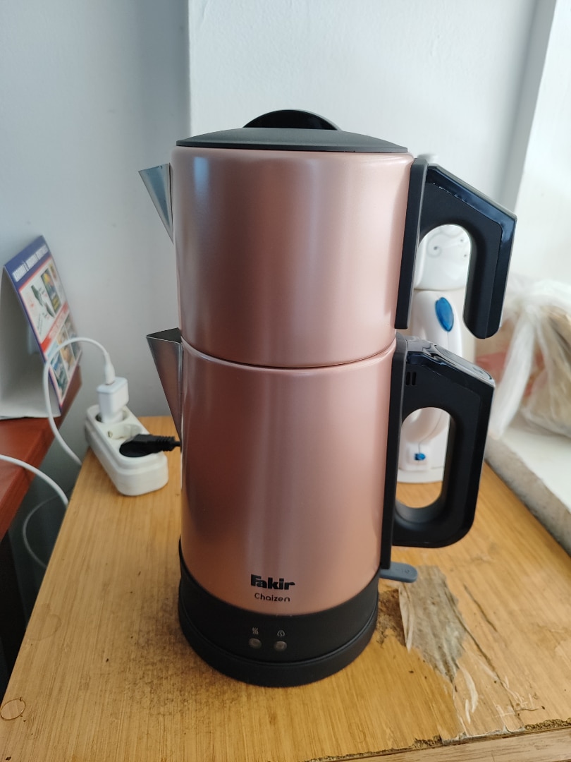 Fakir zaten kaliteli bir marka. Rengine pembe dediklerine bakmayın. Daha çok açık kahverengi gibi. Demlik kısmı çok büyük. İçinden metal çay süzgecide çıkıyor. Gönül rahatlığıyla alabilirsiniz.