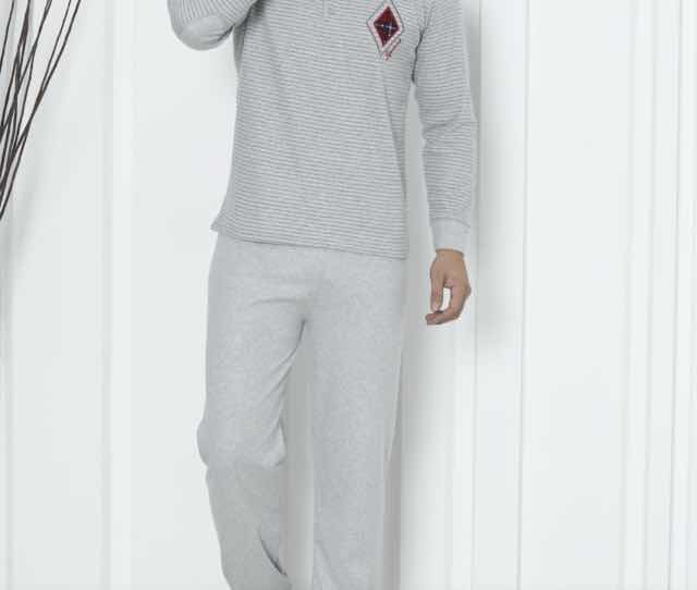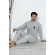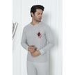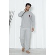 Falkom 5006 İnterlok Kalın Kışlık Çizgili Erkek Ev Pijama Takımı Gri