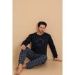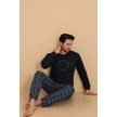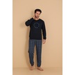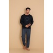 Falkom 7003 İnterlok Kışlık Ekose Pijamalı Erkek Pijama Takımı Lacivert