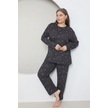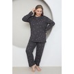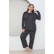 Fames Pijama Büyük Beden Kalp Desenli Mevsimlik Uzun Kol Pijama Takim Füme