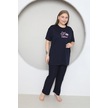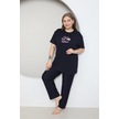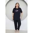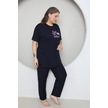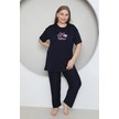Fames Pijama Büyük Beden Likrali Ring Viskon Kisa Kol Yazlik Pijama Takim Lacivert
