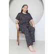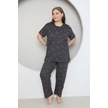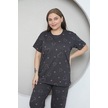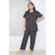 Fames Pijama Büyük Beden Pembe Kalp Desenli Pijama Takim Koyu Füme