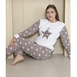 Fames Pijama Büyük Beden Polar Pijama Takım Gri-beyaz
