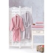 4 Parça Aile Bornoz Seti Kadın Erkek Havlulu Bornoz Takımı Pembe Gri 001