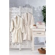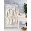 Family Nakışlı Krem & Krem Aile Bornoz Seti 6 Parça Çeyizlik Kadı
