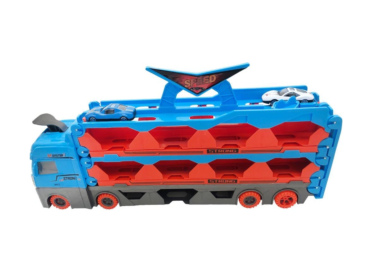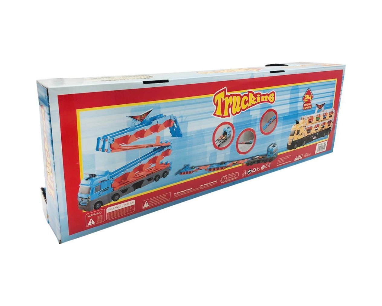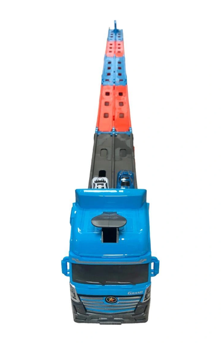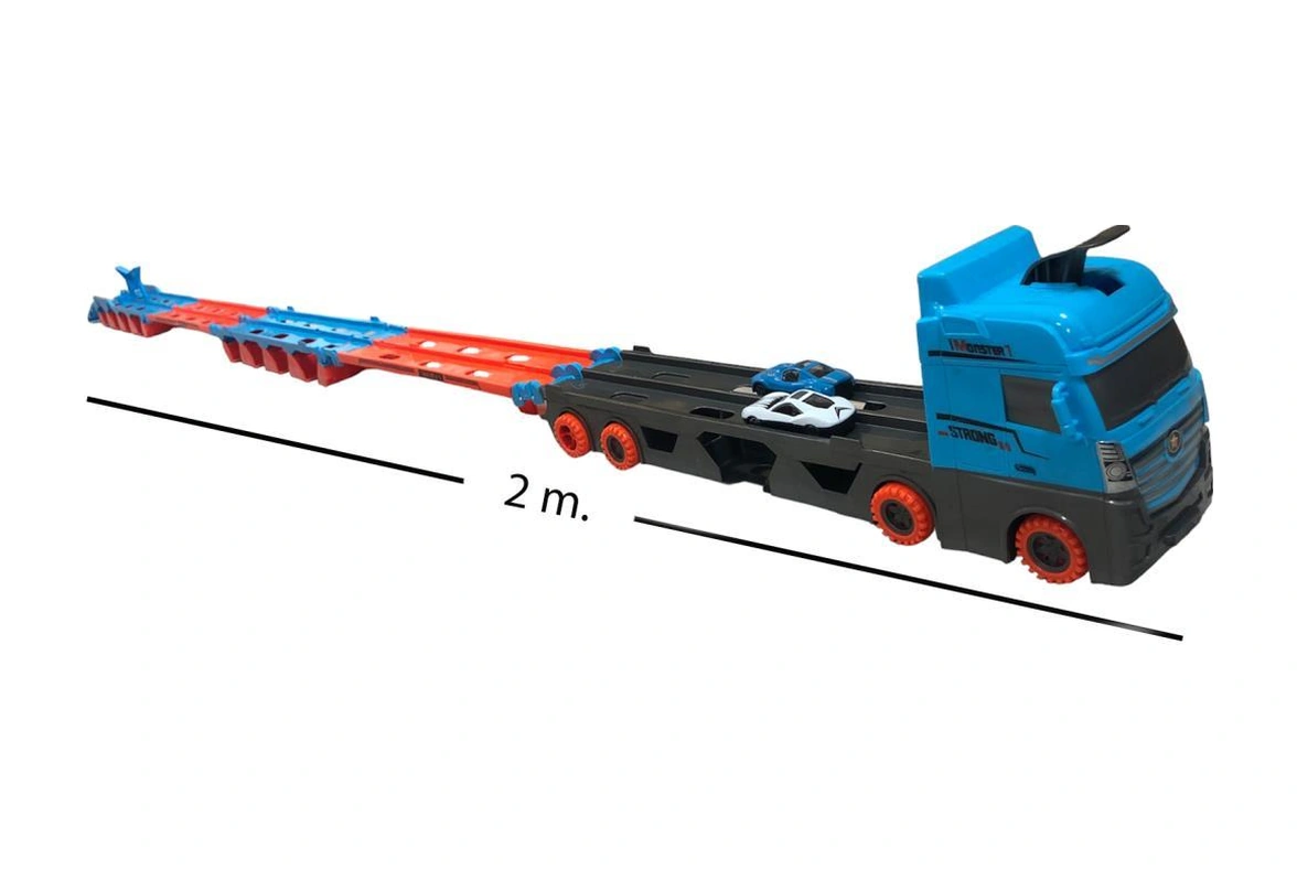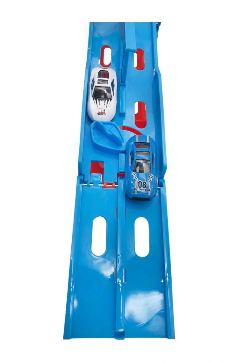 Farbu Oyuncak Sürat Pistli Tır, 2 Mt Pist Tek Kol Fırlatıcı 24 Araç Kapasiteli Taşıyıcı Tır, 2 Adet Araba İçerir Mavi Mavİ