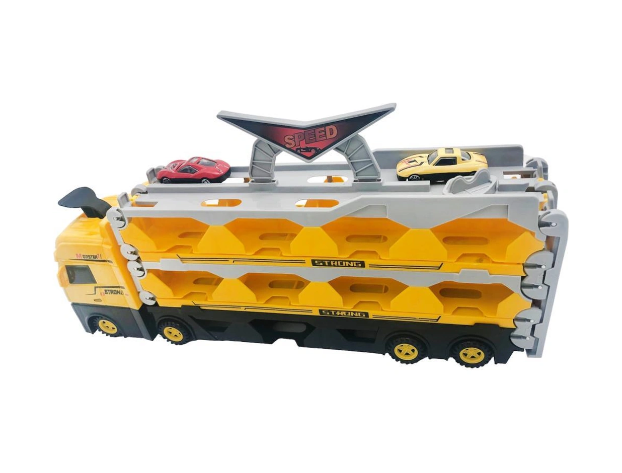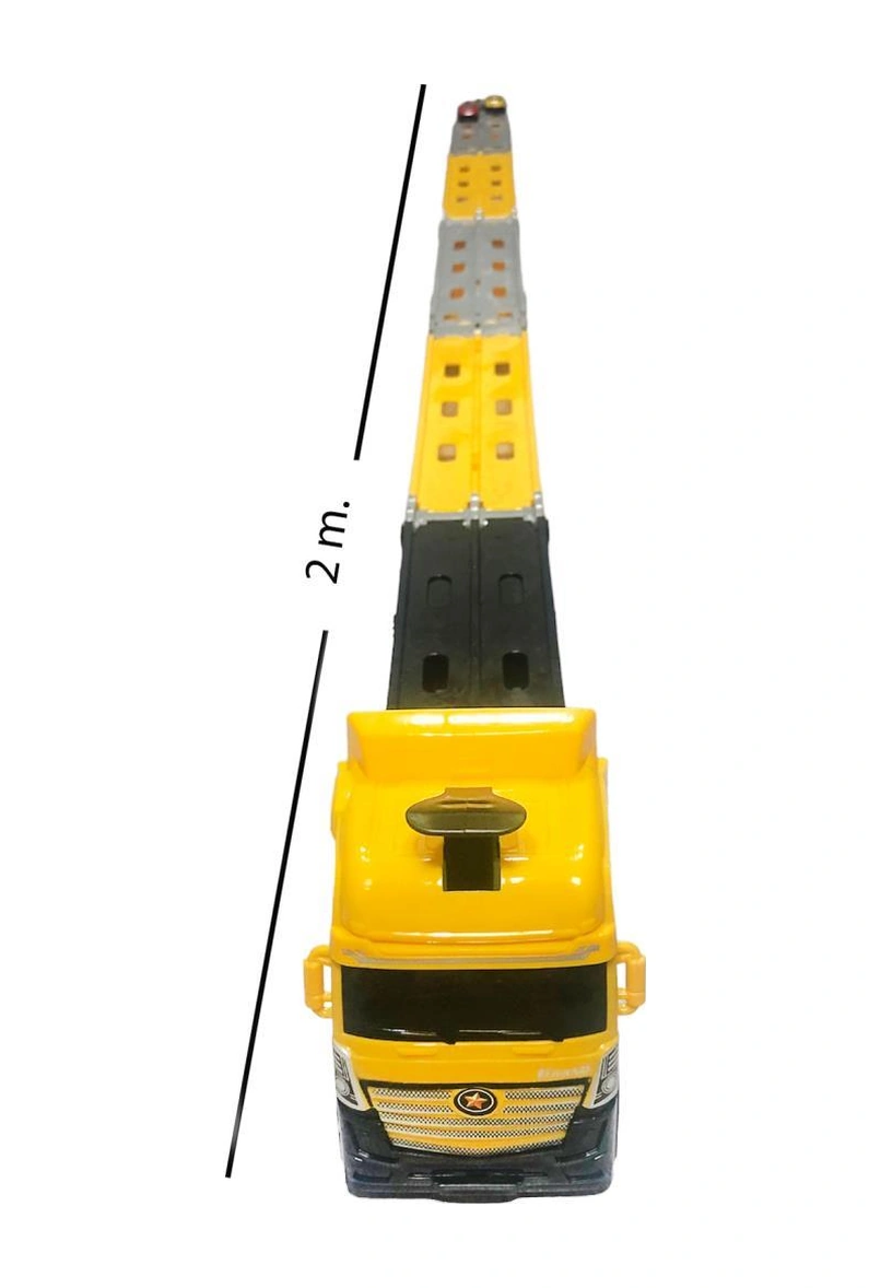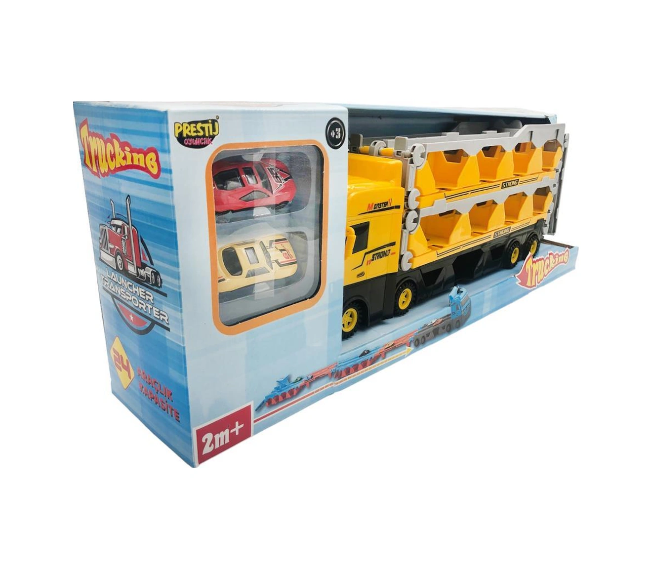 Farbu Oyuncak Sürat Pistli Tır, 2 Mt Pist Tek Kol Fırlatıcı 24 Araç Kapasiteli Taşıyıcı Tır, 2 Adet Araba İçerir Sarı Sarı