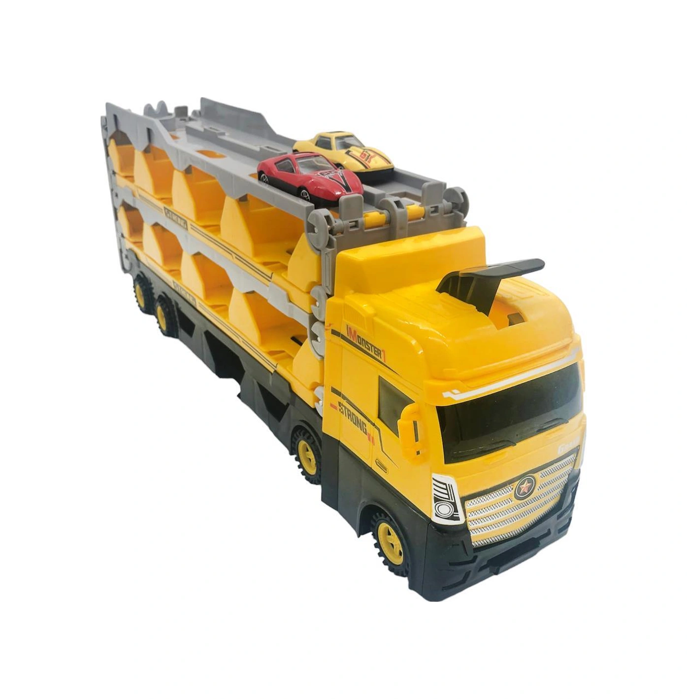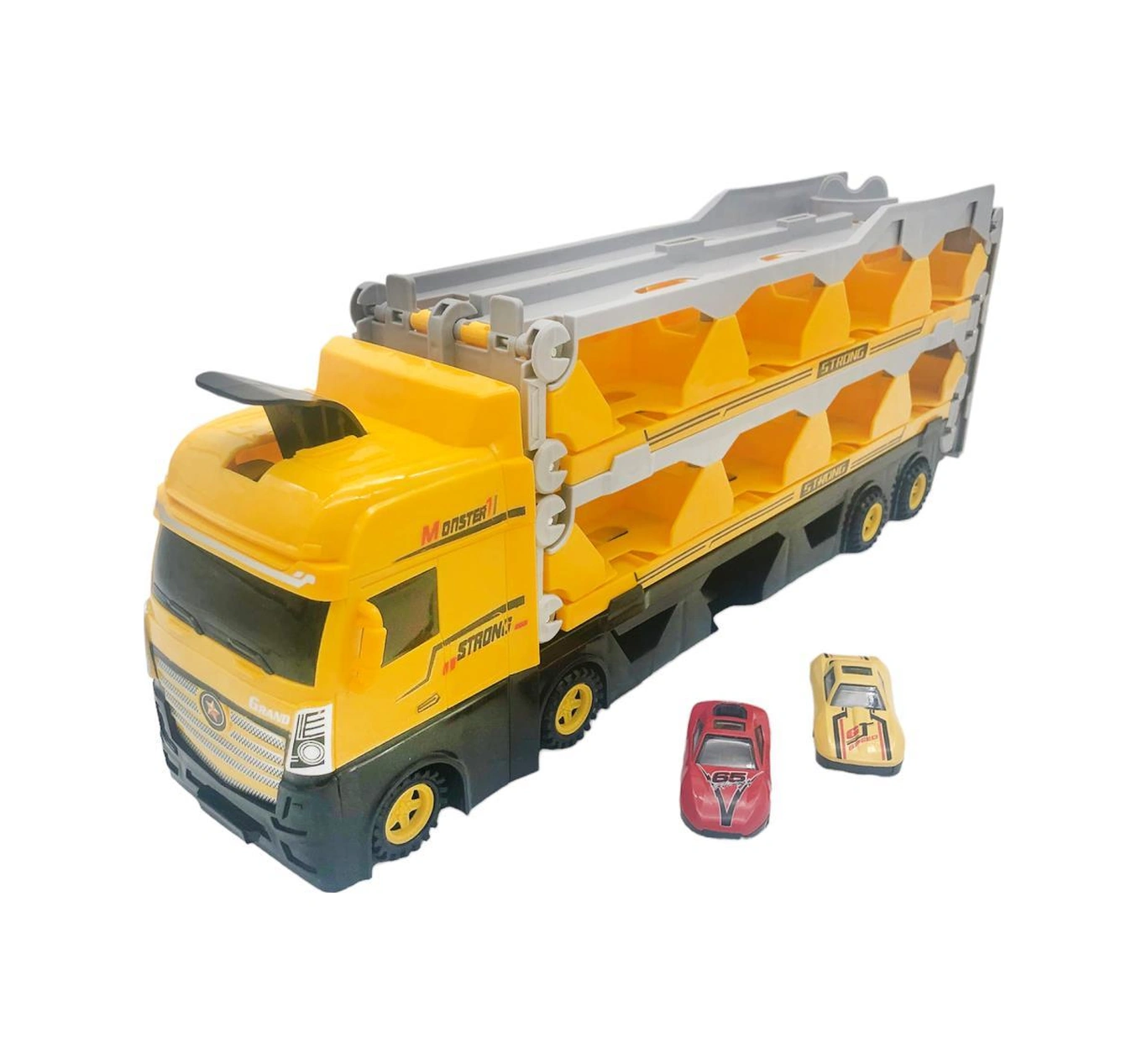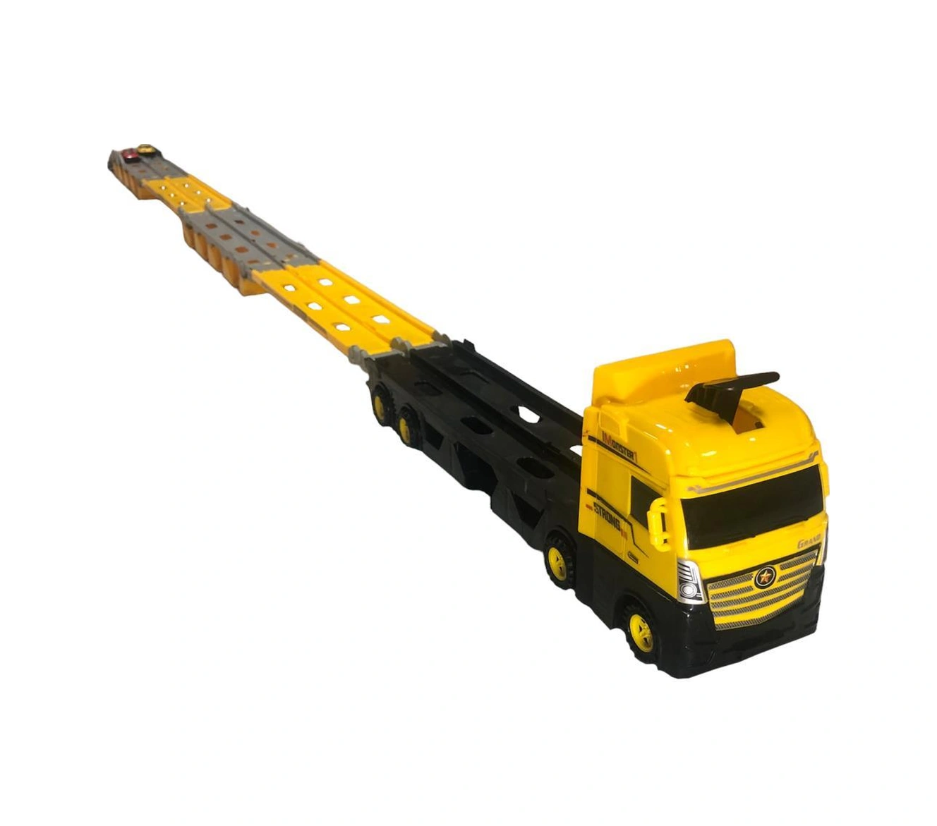 Farbu Oyuncak Sürat Pistli Tır, 2 Mt Pist Tek Kol Fırlatıcı 24 Araç Kapasiteli Taşıyıcı Tır, 2 Adet Araba İçerir Sarı Sarı