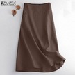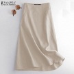 Fastbuy Bayan Yaz Fermuarlı Pamuk Etek - Keten Karışımı, Bej Renk Bej
