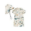 Fastbuy Bej Yürüyen Erkek Mayo, 3-12 Ay, 2-3 Yaş, Güneş Koruyucu Kısa Kollu, Fermuarlı, Hayvan Desenli Şapka Bej